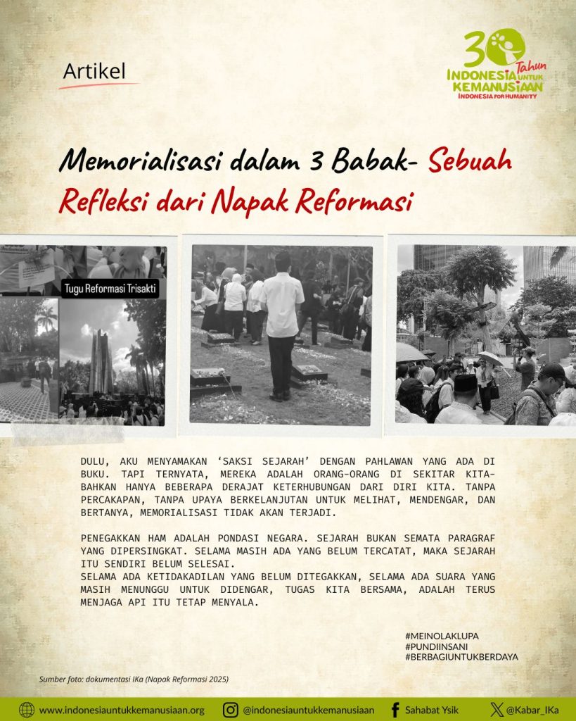 “Sejarah ditulis oleh pemenang.” Kita sering mendengar kalimat itu sebagai klise, namun kenyataannya jauh lebih kelam. Penulisan ‘sejarah resmi’ negara bekerja seperti mesin penghapus, secara sistematis melenyapkan fakta-fakta yang dianggap terlalu mengganggu terutama jejak-jejak pelanggaran Hak Asasi Manusia. Dikhawatirkan narasi “resmi” bersifat reduktif dan menghapus kompleksitas pengalaman mereka yang terlibat di dalamnya.